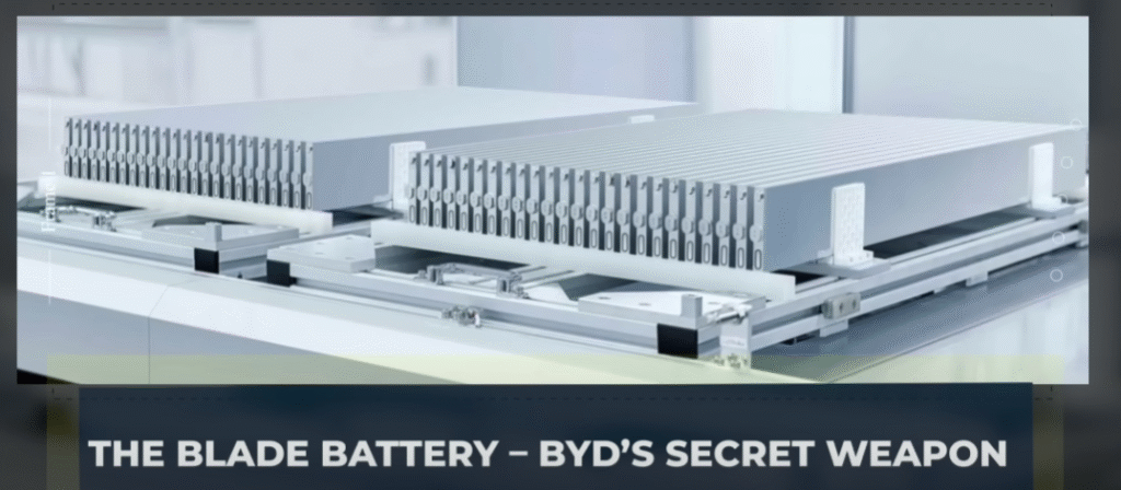 BYD की Blade Battery उनकी सफलता का सबसे अहम हिस्सा है। ये लंबी, पतली सेल्स का इस्तेमाल करती है जिससे ज्यादा पावर और स्पेस मिलता है।