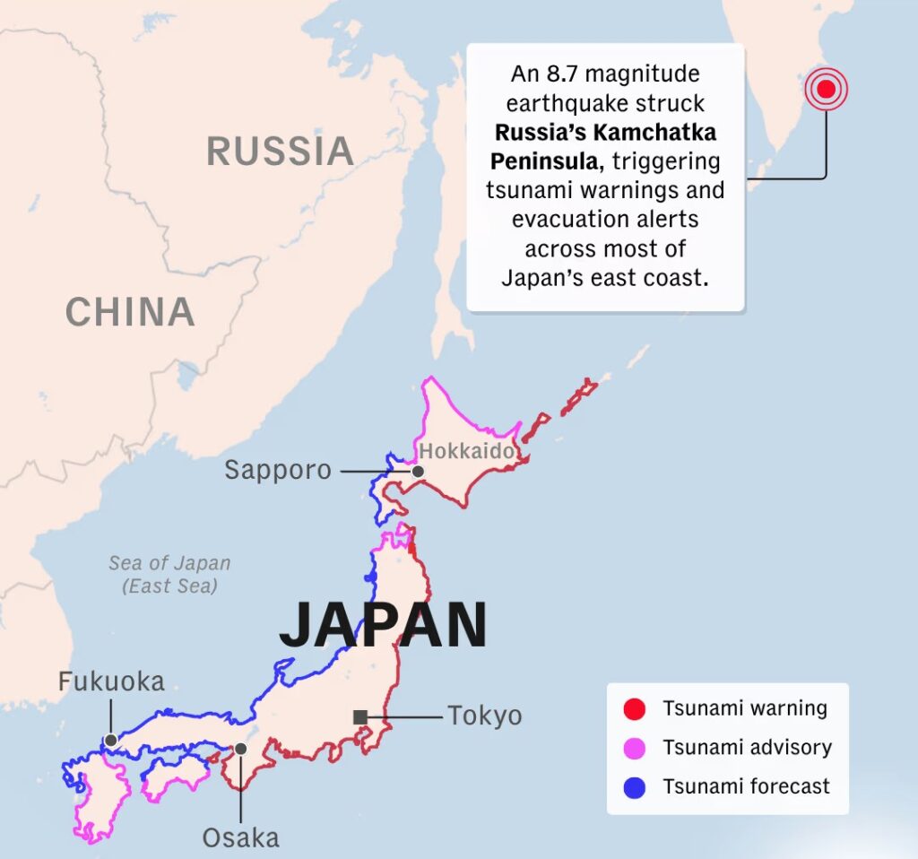 रूस और जापान में आया यह 8.8 तीव्रता का भूकंप सुनामी का कारण बना, पर 2011 जितनी तबाही नहीं हुई। फिर भी वैज्ञानिकों का मानना है कि खतरा अभी टला नहीं है।