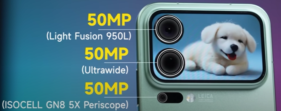इसमें कुल चार 50MP कैमरे हैं — तीन पीछे और एक आगे। रियर कैमरा में 5X टेलीफोटो ज़ूम, बेहतरीन पोर्ट्रेट और डिटेल्ड शॉट्स मिलते हैं। फ्रंट कैमरा से ली गई सेल्फी बहुत शार्प और क्लियर आती है।